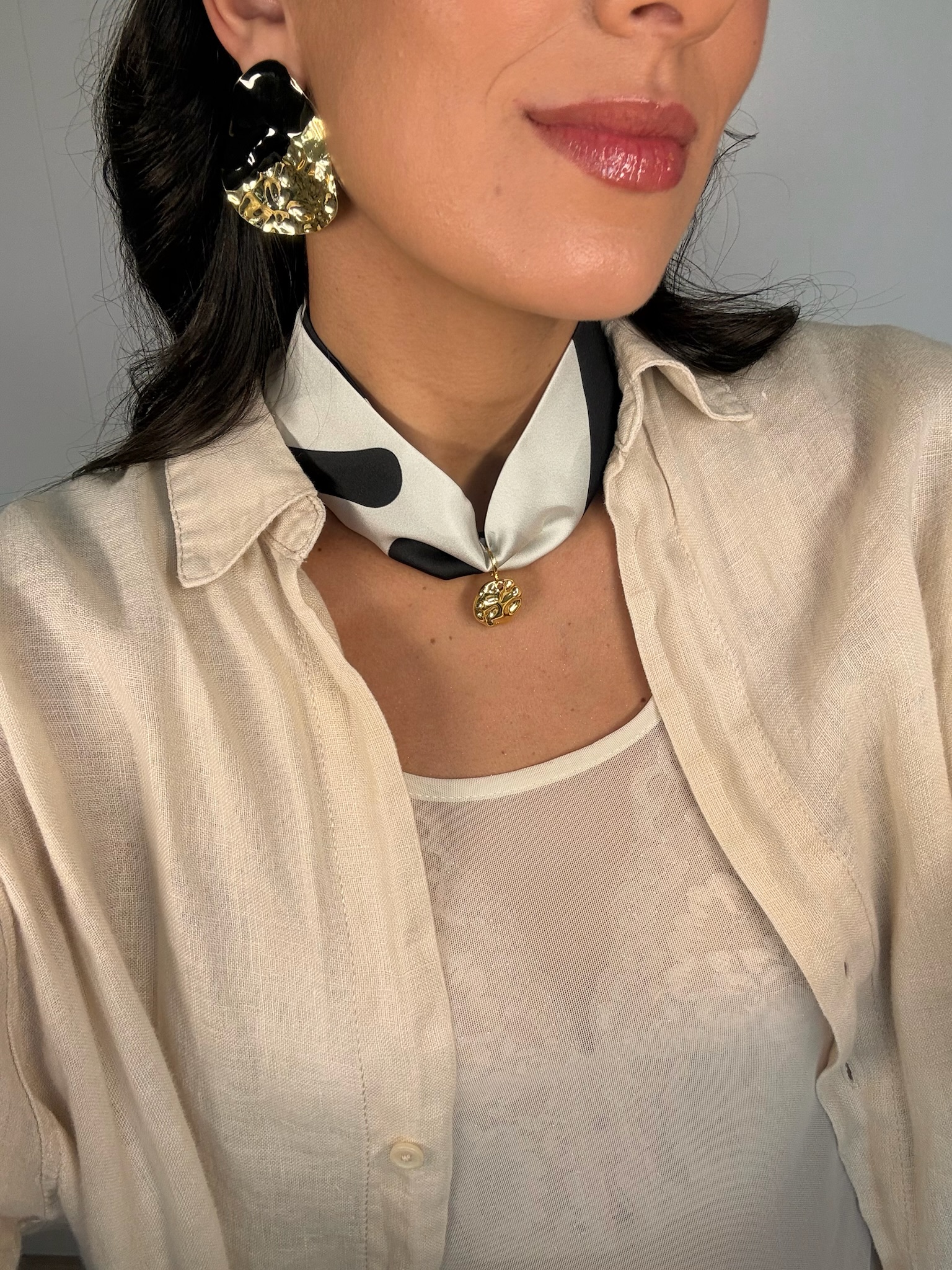 Faixa com estampa de onça na cor preto e branco, desenvolvida exclusivamente pela marca. Feita no tecido toque de seda, leve e versátil, oferecendo múltiplas formas de uso. É possível usá-la como um elegante acessório para o pescoço, no cabelo para um toque de charme em seu penteado, no punho como uma pulseira ou até mesmo amarrações como um detalhe na bolsa, roupa e onde sua criatividade permitir. Sua estampa e seu design atemporal tornam esta peça especial para todas as estações.*Consulte a aba “dicas de conservação” ou vide a etiqueta afixada ao produto para ciência sobre os cuidados com a peça. Comprimento total de 86cm.