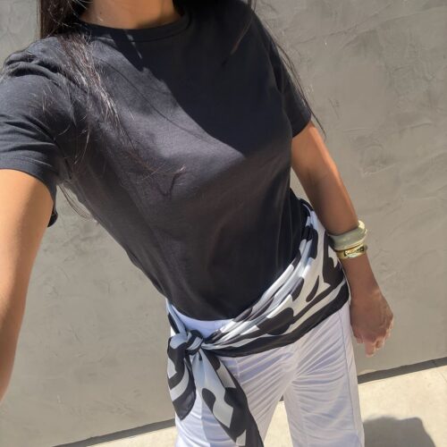 Lenço com estampa de onça na cor preto e branco. Tecido 100% poliéster. Medida de 90×90 cm. *Consulte a aba “dicas de conservação” ou vide a etiqueta afixada ao produto para ciência sobre os cuidados com a peça.