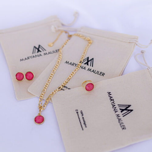 Pingente com abertura no banho de ouro com pedra goiaba.