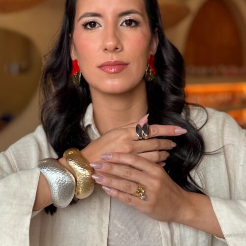Pulseira de largura grande, formato orgânico e textura martelada no banho diamante, com fecho de imã que possibilita a abertura com mais praticidade. Consulte a aba “dicas de conservação” ou vide a etiqueta afixada ao produto para ciência sobre os cuidados com a peça.