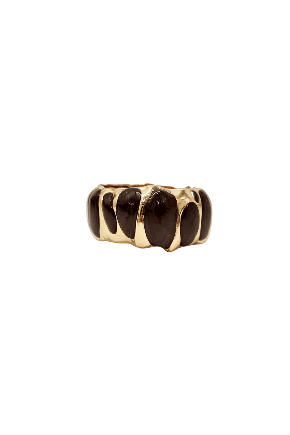 Pulseira no banho de ouro com detalhes em esmaltação marrom, design orgânico robusto e acabamento de alto brilho, leve. *Consulte a aba “dicas de conservação” ou vide a etiqueta afixada ao produto para ciência sobre os cuidados com a peça.